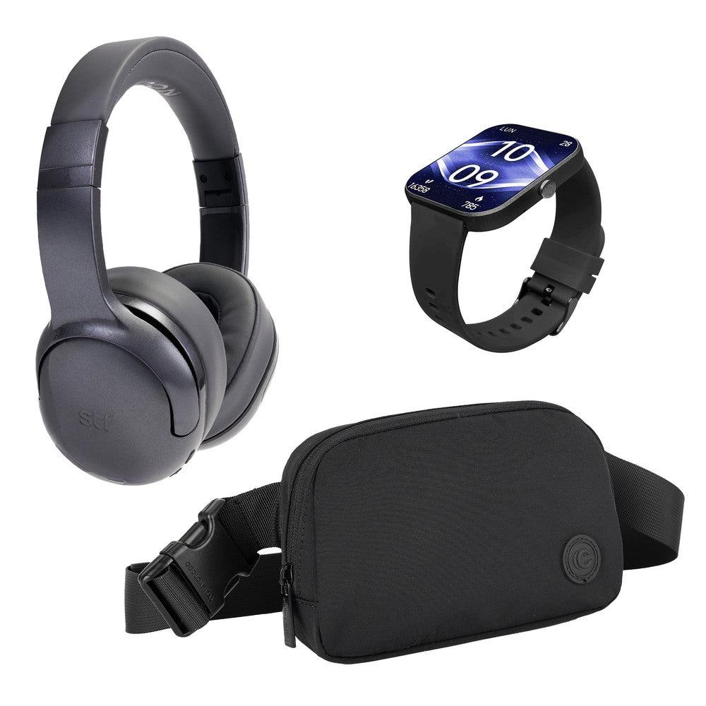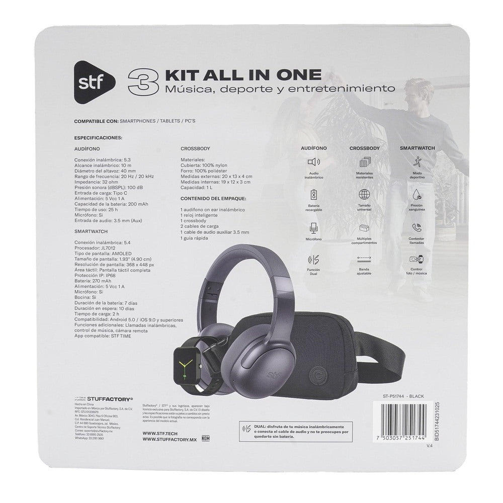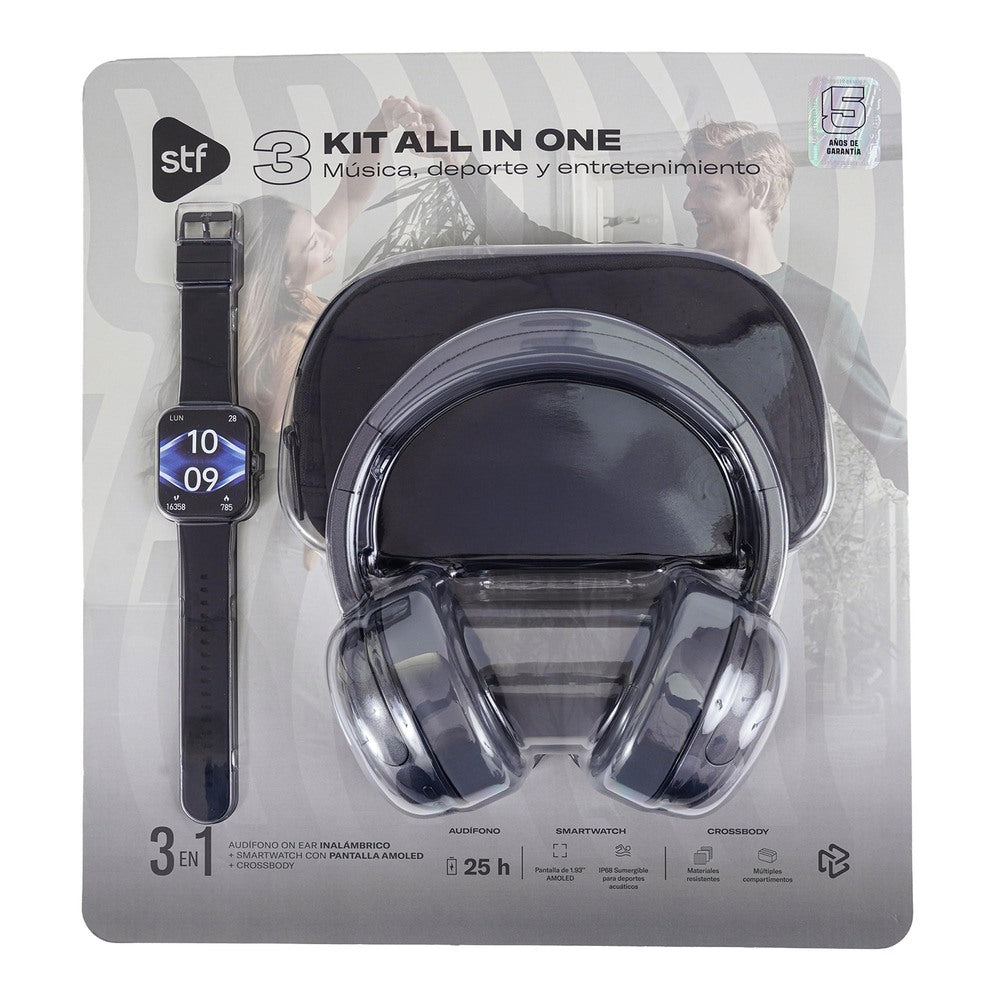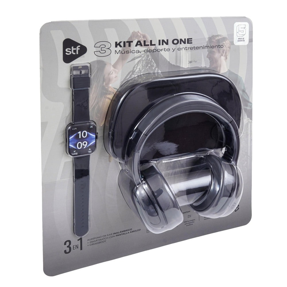 El STF Kit All in One 3 es la solución ideal para quienes buscan tecnología práctica y versátil en un solo paquete. Diseñado para acompañarte en tu rutina diaria, este kit reúne audífonos inalámbricos, smartwatch y crossbody, combinando conectividad, comodidad y funcionalidad para el día a día.