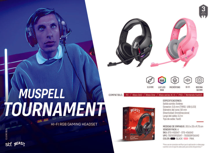 Los audífonos Muspell Tournament, están listos para ganar cualquier partida, tienen un sonido inigualable Hi-Fi, luz led multicolor, micrófono para comunicarte con tu equipo y un diseño ergonómico y muy cómodo para aquellas competencias de largas horas. Su conexión es de 3.5 mm para colocarlo en cualquier dispositivo y el largo del cable es de 2.2 mm.