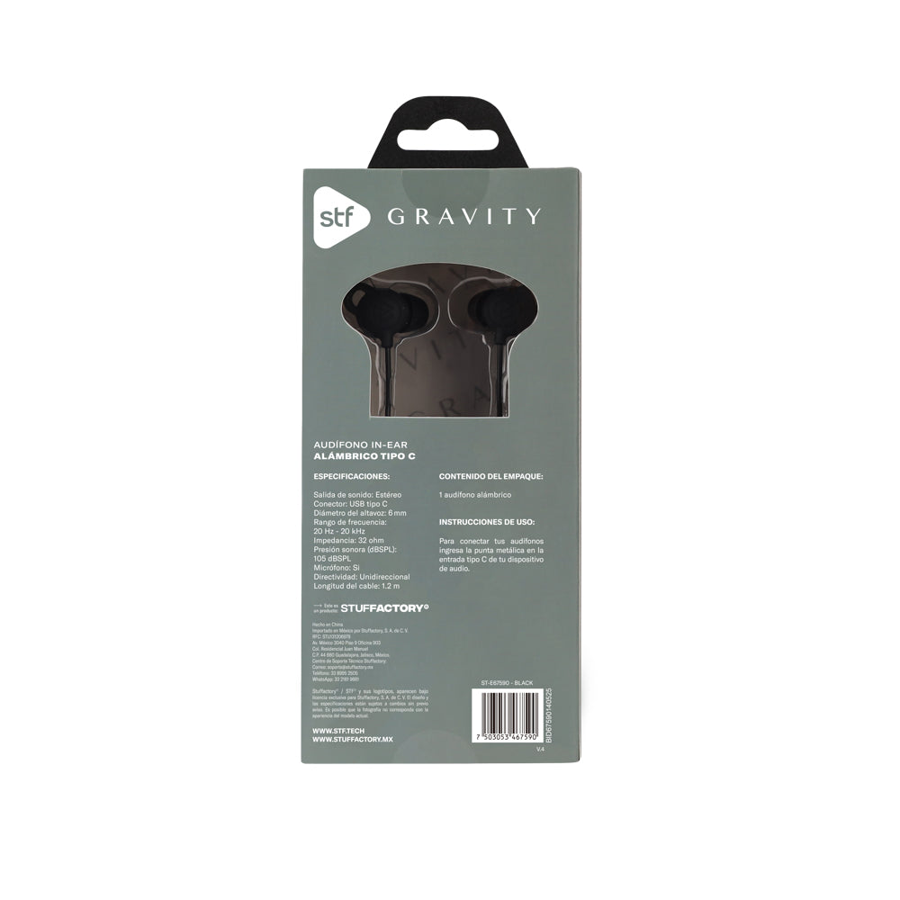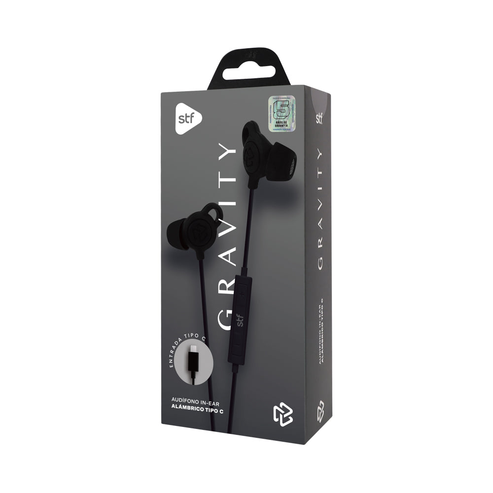 Los Gravity Audífonos In-Ear Tipo C combinan un diseño moderno con un toque de estilo que resalta en cualquier lugar. Gracias a su conexión USB Tipo C, brindan una experiencia de audio estable y de alta fidelidad, ideal para quienes buscan practicidad y buen gusto en cada detalle.