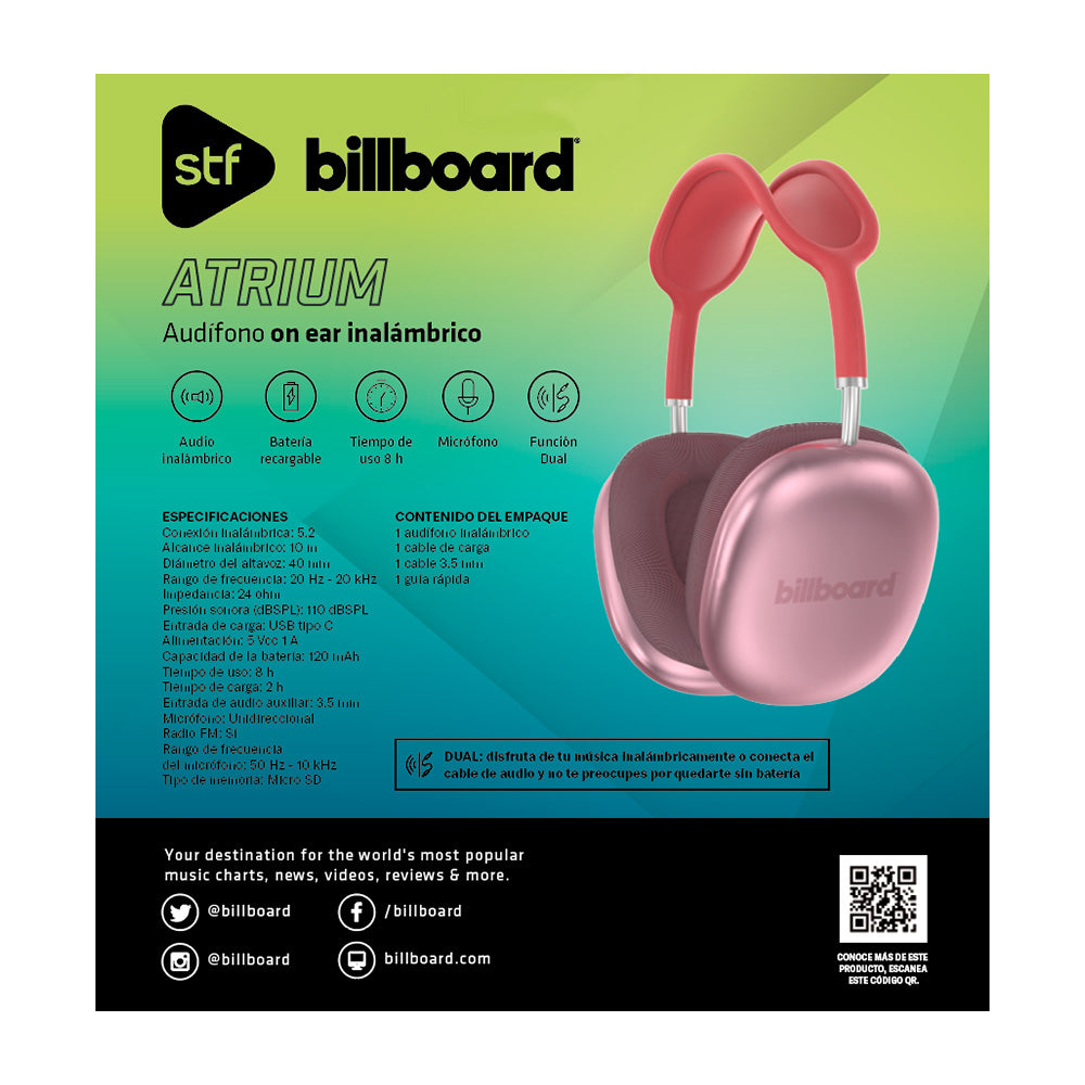 Audífonos Inalámbricos On-Ear Atrium STF - Billboard: 8hrs Uso, Rosa