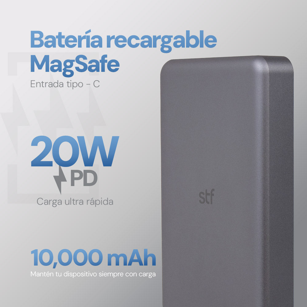 La solución de energía portátil definitiva: la power bank MagSafe de 10000mAh de STF. Experimenta la carga inalámbrica magnética ultra conveniente de hasta 15W para tu celular compatible. Además, disfruta de la carga rápida y versátil a través de su puerto Tipo C Power Delivery (PD) de 20W con PPS de hasta 22W (salida: 5V/2.4A, 9V/2.22A, 12V/1.67A, 3.3V-11V 2A) y sus dos puertos USB Quick Charge (QC) de 22.5W y 18W (salida: 4.5V/5A, 5V/4.5A, 5V/3A, 9V/2A, 12V/1.5A).