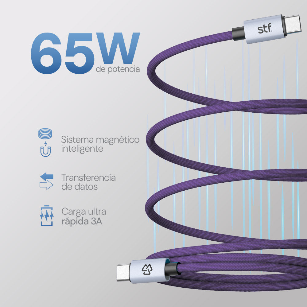 Carga, conecta y protege tus dispositivos con el Cable Magnético Tipo C a Tipo C 65 W: potencia y estilo en cada conexión.