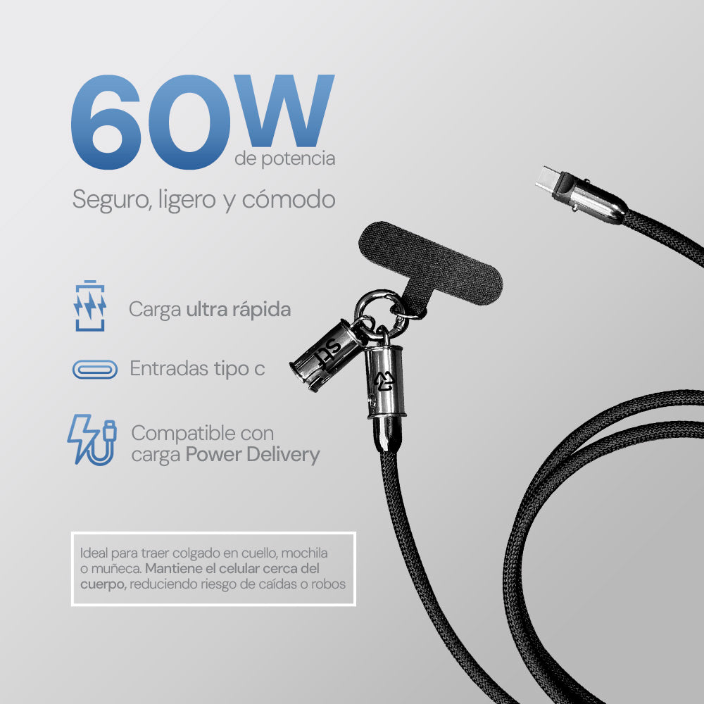 El Cable Sujetador para Celular Tipo C de 120 cm es la combinación ideal entre potencia, funcionalidad y diseño inteligente. Con 60 W de potencia, permite una carga ultra rápida y estable, ideal para smartphones, tablets y laptops compatibles con tecnología Power Delivery (PD).