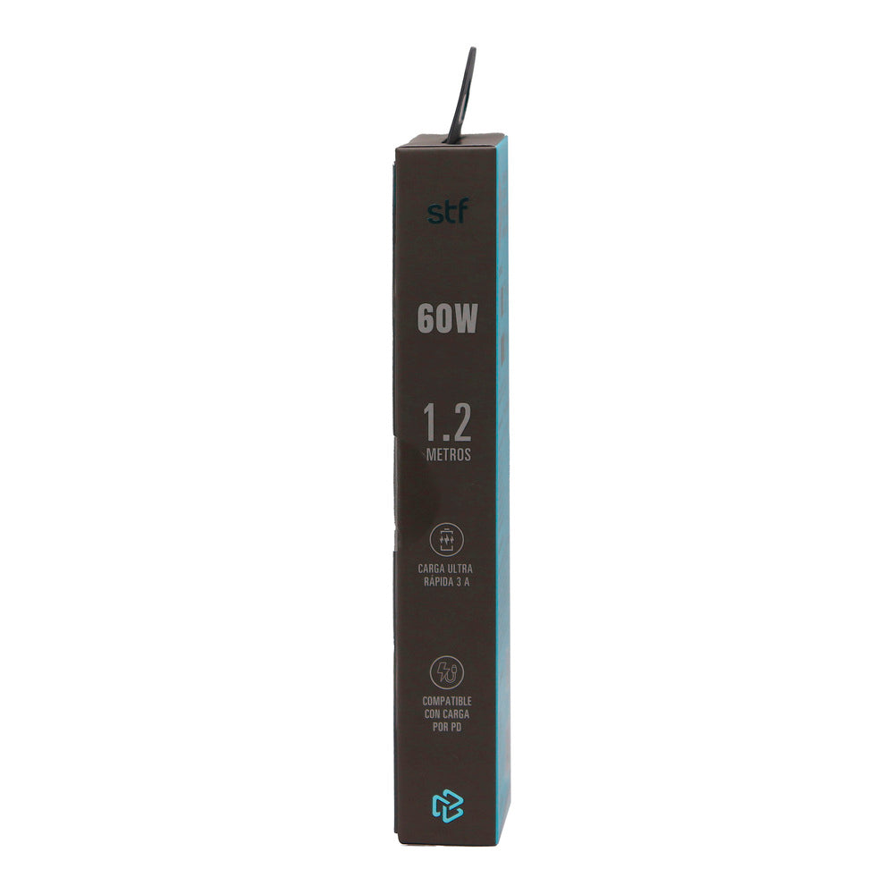 Su diseño incorpora dos entradas Tipo C, lo que facilita la conexión de distintos dispositivos sin necesidad de adaptadores adicionales. Además, su estructura compacta de 120 cm lo hace perfecto para cargar sin enredos, ya sea en el escritorio, el auto o durante tus viajes.