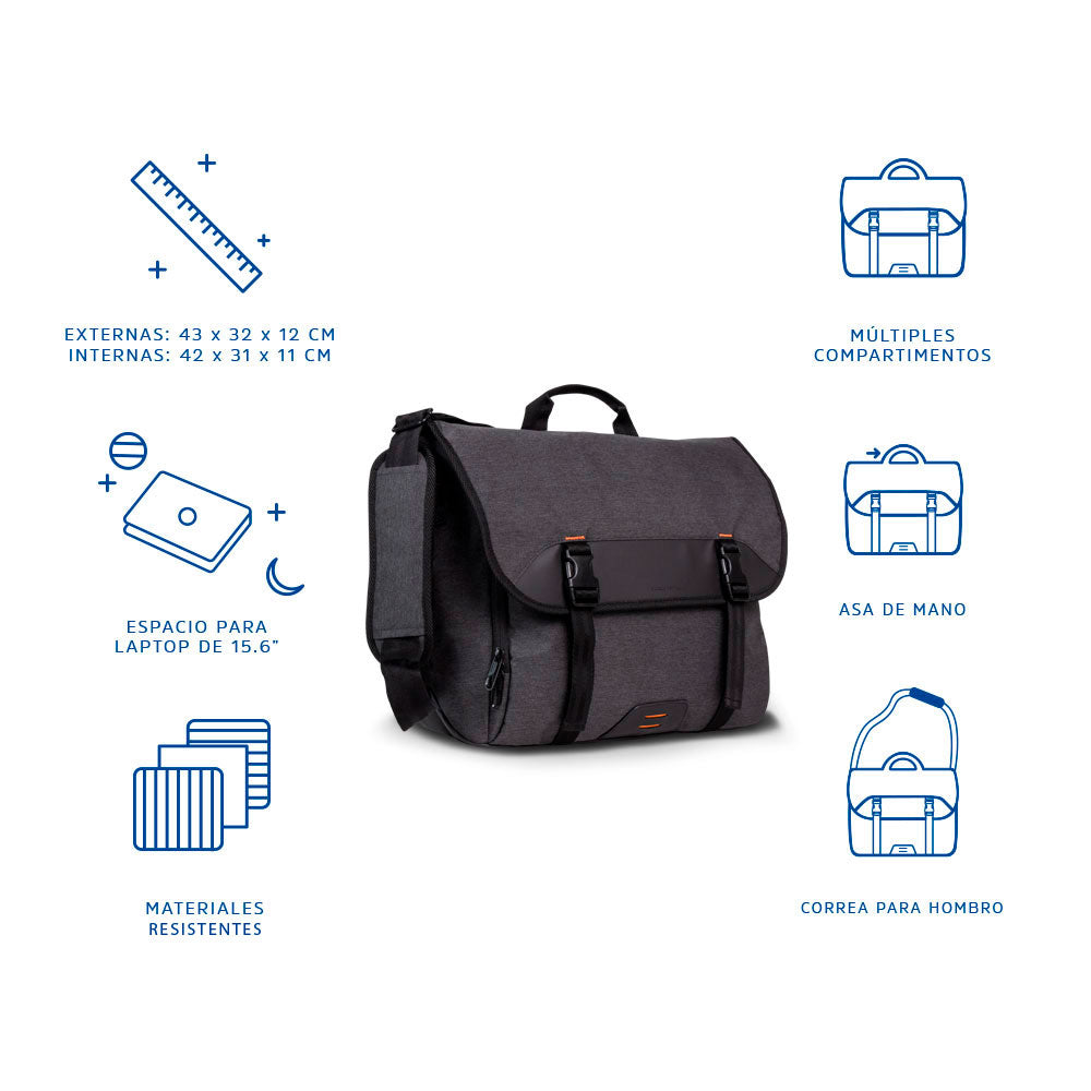 El portafolio Urban está diseñado para acompañarte a la oficina, reuniones o recorridos por la ciudad. Cuenta con dos broches frontales para abrir y cerrar fácilmente, un compartimento con ajustador de velcro para laptop de hasta 15.6” (39.6 cm) y un espacio amplio para documentos y accesorios. Puedes llevarlo como bolso mensajero gracias a su correa ajustable o tomarlo desde su asa superior para un estilo más ejecutivo. Su diseño fino y elegante lo convierte en un accesorio irresistible a la vista.