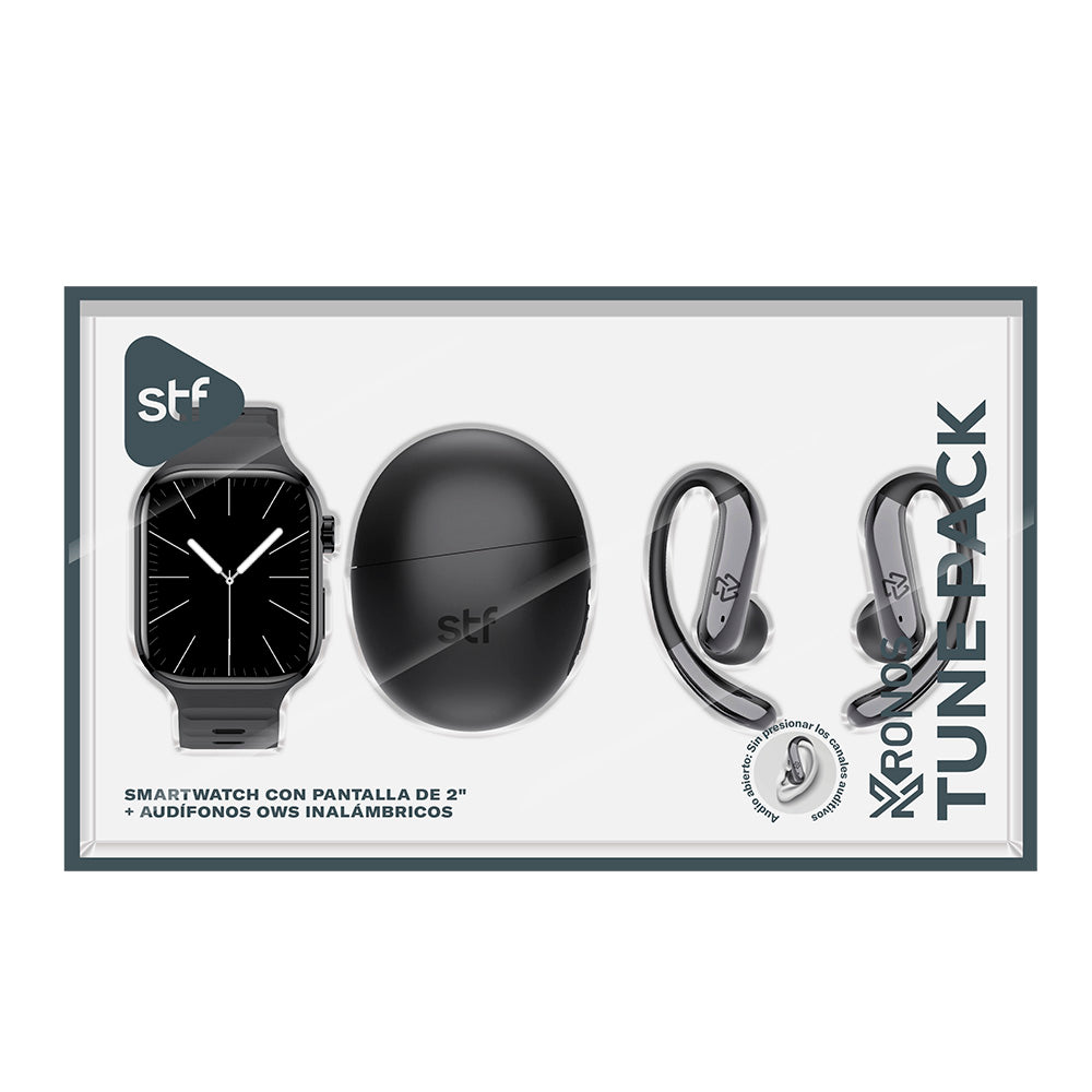 Vive una experiencia completa de conectividad, audio y estilo con el Kronos Tune Pack, el kit perfecto que combina un Smartwatch de pantalla grande de 2.01 pulgadas con audífonos OWS inalámbricos, diseñado para acompañarte durante todo el día tanto en trabajo como en actividad física o momentos de descanso.