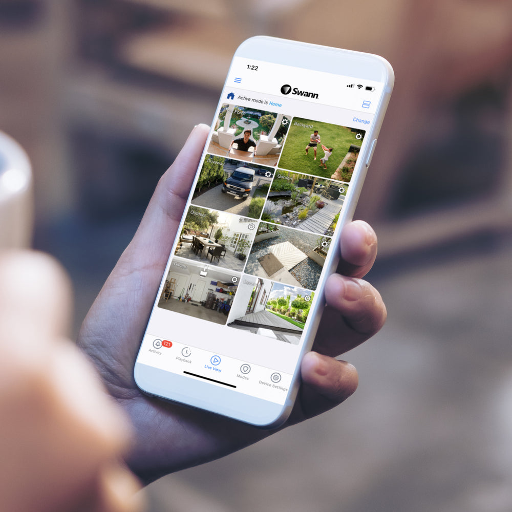 | App móvil | Swann Security (iOS y Android) — alertas en tiempo real |
