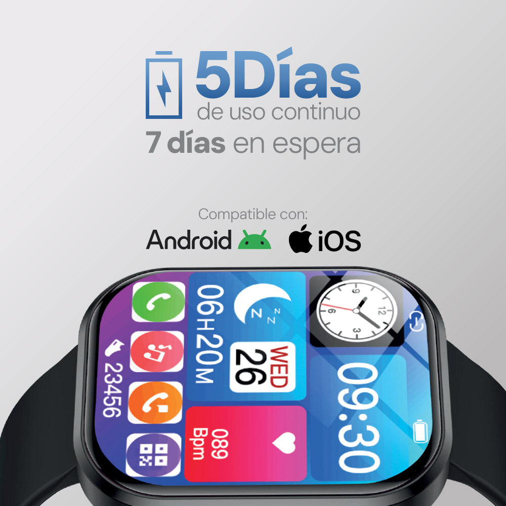 Smartwatch: 5-7 días Bocina: 3 hrs |