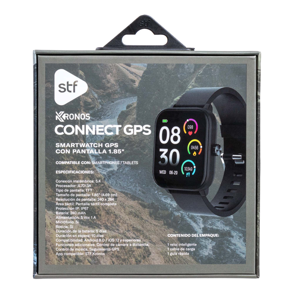 Explora sin límites con el Kronos Connect GPS de STF, el smartwatch diseñado para acompañarte en cada aventura. Su pantalla TFT de 1.85" te ofrece una visualización clara y vibrante. Gracias al GPS incorporado, podrás rastrear tus rutas con precisión, ya sea que estés corriendo por la ciudad o escalando montañas. Con certificación IP67, el Kronos Connect es resistente al agua, permitiéndote sumergirte hasta 1 metro por 30 minutos sin preocupaciones. Responde llamadas directamente desde tu muñeca, y utiliza la brújula integrada para mantener el rumbo. Además, controla tu frecuencia cardíaca, oxigenación y patrones de sueño, mientras disfrutas de hasta 5 días de batería. Con más de 100 modos multideportivos, este reloj está preparado para cada desafío.