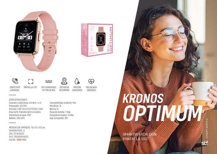 Smartwatch reloj inteligente | STF Kronos Optimum | 1.85", IP67 Rosa