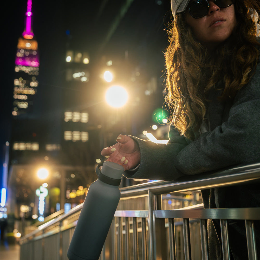 Con una capacidad de 750 ml (25 oz), el Sora Termo ofrece mayor volumen para quienes necesitan hidratación constante a lo largo del día. Sus medidas de 26 cm de altura y 8 cm de diámetro lo hacen funcional y fácil de integrar en mochilas, tote bags o bolsas de uso diario.